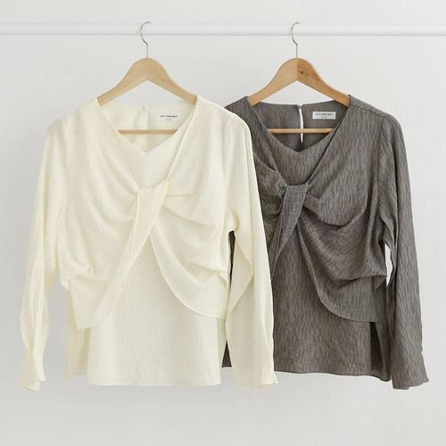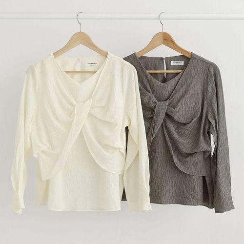 옷자락 / 여성 꼬임 리본 레이어드 블라우스 가을 하객룩