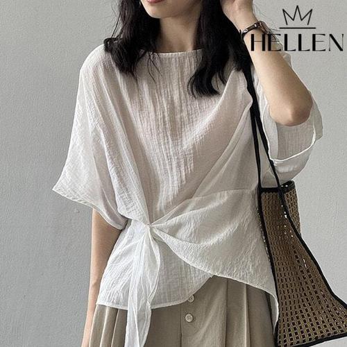 [헬렌]헬렌 여름 하객룩 꼬임 반팔 블라우스 러쉬카프BL B-5