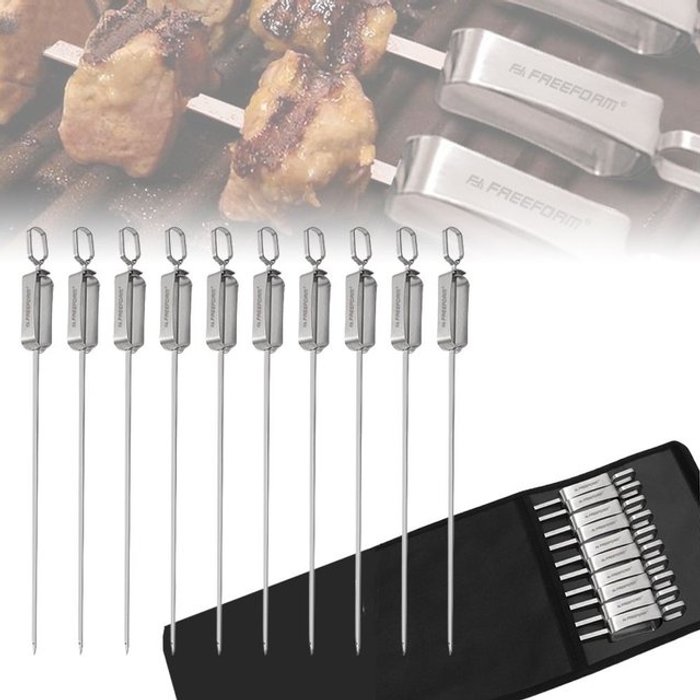 우드 핸들 스테인리스 바베큐 꼬치 10P 세트 캠핑 그릴 꼬치구이용