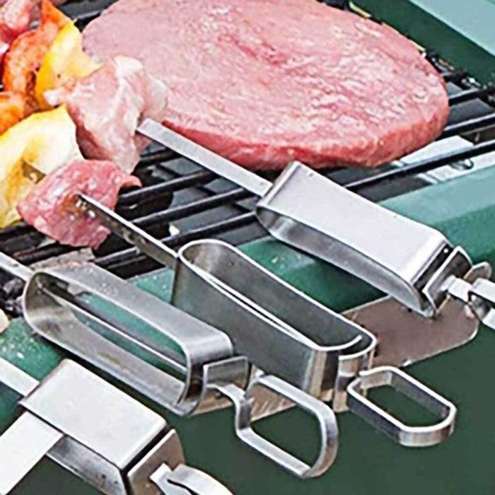 TEMU 고강도 스테인리스 스틸 BBQ 꼬치 6개 세트, 평면 로스팅 스틱 및 J자형 후크 포함 - 케밥, 꼬치구이, 고기, 채소, 과일용 - 야외 그릴, 캠핑, 뒷마당 바베큐용