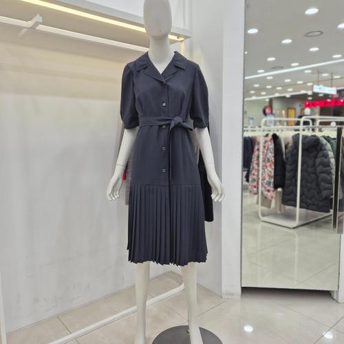 [꼼빠니아]오픈 카라 플리츠 벨티드 원피스 CAFU6-WOP390