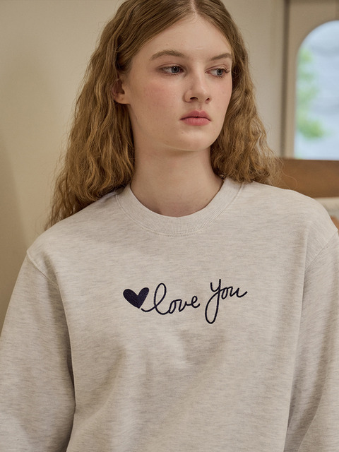 [꼼파뇨] 러브유 체인 자수 스웨트셔츠 오트밀