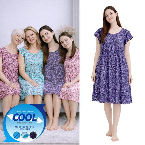 꽃무늬 반팔 원피스 할미플리츠 플라워 치마 여성 여름 쿨링 몸빼 할머니옷 촌캉스룩 주름 냉감