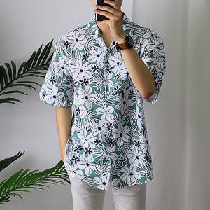 건달 조폭 깡패 야자수 커플 하와이안 꽃무늬 플라워 꽃 반팔 여름 비치 바캉스룩 휴양지룩 셔츠 남방