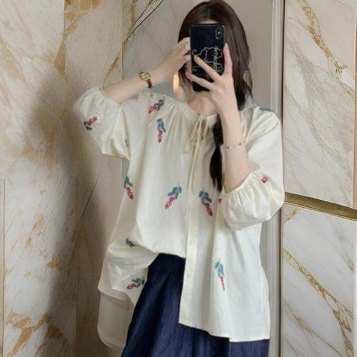 지고다그 여성 가을 자수 꽃무늬 긴소매 블라우스 루즈핏 캐주얼 스타일 LJM1426