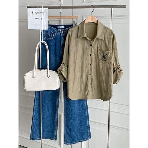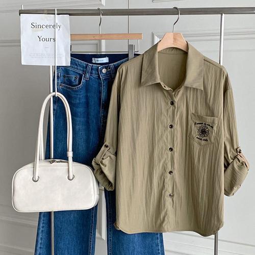 여성 카라넥 롤업 꽃자수 간절기 셔츠 블라우스 DGB-WBL-4741-카키