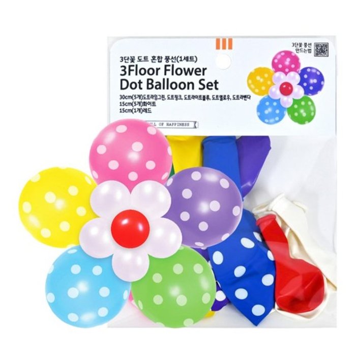 오피스넥스 3단꽃 도트 혼합풍선(1세트)