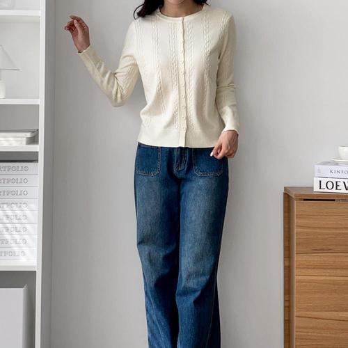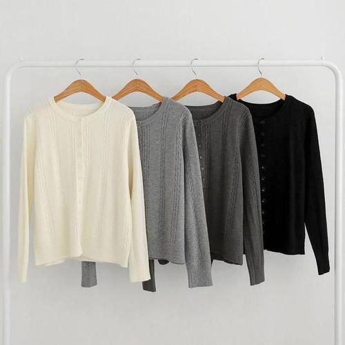 [미라클세븐]여성 꽈배기 버튼 라운드넥 기본 무채색 니트 카디건