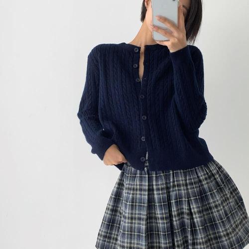 [옷자락]여자 겨울 연말 꽈배기 베이직 라운드넥 단추 가디건