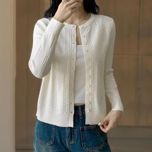[신상오픈런]여성 가을 스타일 라운드 버튼 꽈배기 가디건