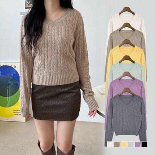 [에이치플러스몰]슈슈 V라인 심플 트위스트캐시 뜨개탑