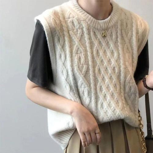 [샵앤][샵앤] 여성 라운드 오버핏 꽈배기 니트 조끼 21DS-WVS-48