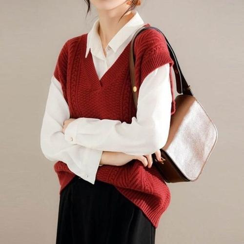 신상 여성 꽈배기 니트 조끼 루즈핏 날씬해 보이는 스타일리시한 베스트 상의