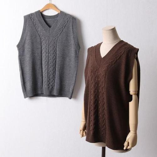 여자 고급스러운 꽈배기 패턴 브이넥 스타일 조끼