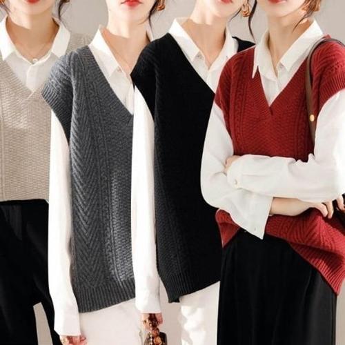[다잇템][다잇템] 여자 7컬러 브이 꽈배기 FW 울 코르셋 니트조끼_23387906_588872