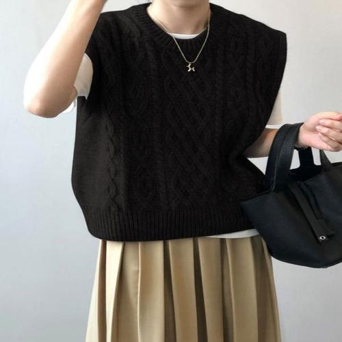 [오너클랜]인기상품 여성 니트조끼 꽈배기 라운드 조끼 베스트 레이어드 [WD88DD2_250918]