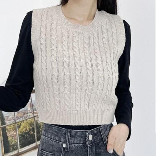 [엄지척]러블리 데일리 여자 케이블 크롭 꽈배기 니트조끼_19628489_667501