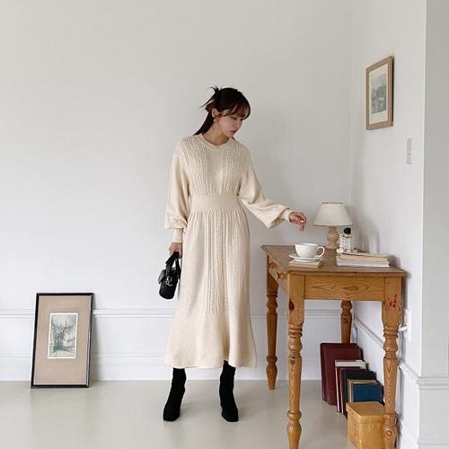 [다잇템]여자 니트원피스 라운드넥 꽈배기 롱원피스