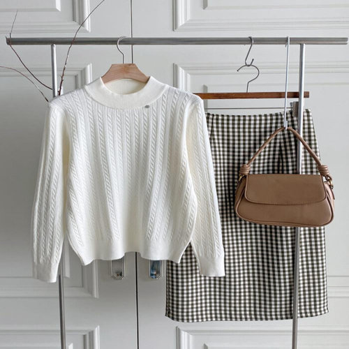 루즈리 여자 하프 롱 꽈배기 쫀쫀 여성 반목니트
