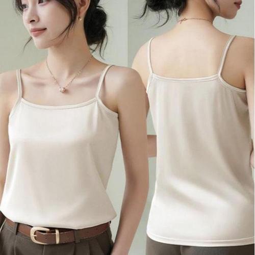 [셀러허브_여성트랜드패션]여성 실키 부드러운 민소매 새틴 나시 티셔츠 여름 끈