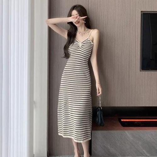 [오너클랜]인기상품 여자 끈나시 다양한 라인 포인트 예쁜 니트 롱원피스 [WE7788E_250916]