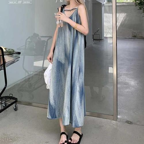 [오너클랜]인기상품 여성 스모크 데님 끈나시 원피스 청 롱원피스 민소매 [WEC85E8_250919]