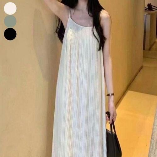 [셀러허브_여성트랜드패션]여자 롱원피스 플리츠 맥시드레스 여름 끈나시 편한