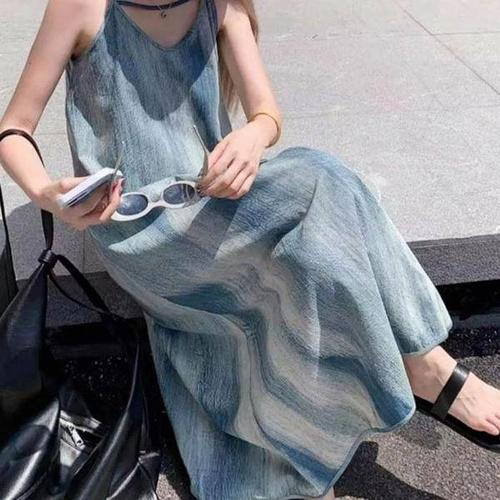 [셀러허브_여성트랜드패션]나염 그라데이션 여름 원피스 썸머 끈원피스 롱 잉크