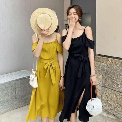 [엄지척]여리여리 블랙 오프숄더 끈 롱원피스 JSC-24062301_19911272_667501