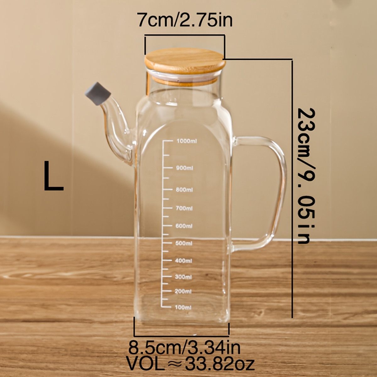 TEMU 헤비듀티 유리 올리브 오일 디스펜서 병 및 주전자 스파우트 - 식품 등급 직사각형 오일 디스펜서, 샐러드 드레싱, 요리용 오일 - 바베큐, 그릴링, 레스토랑 및 주방용 - 손세척 전용 (PVC 프리)