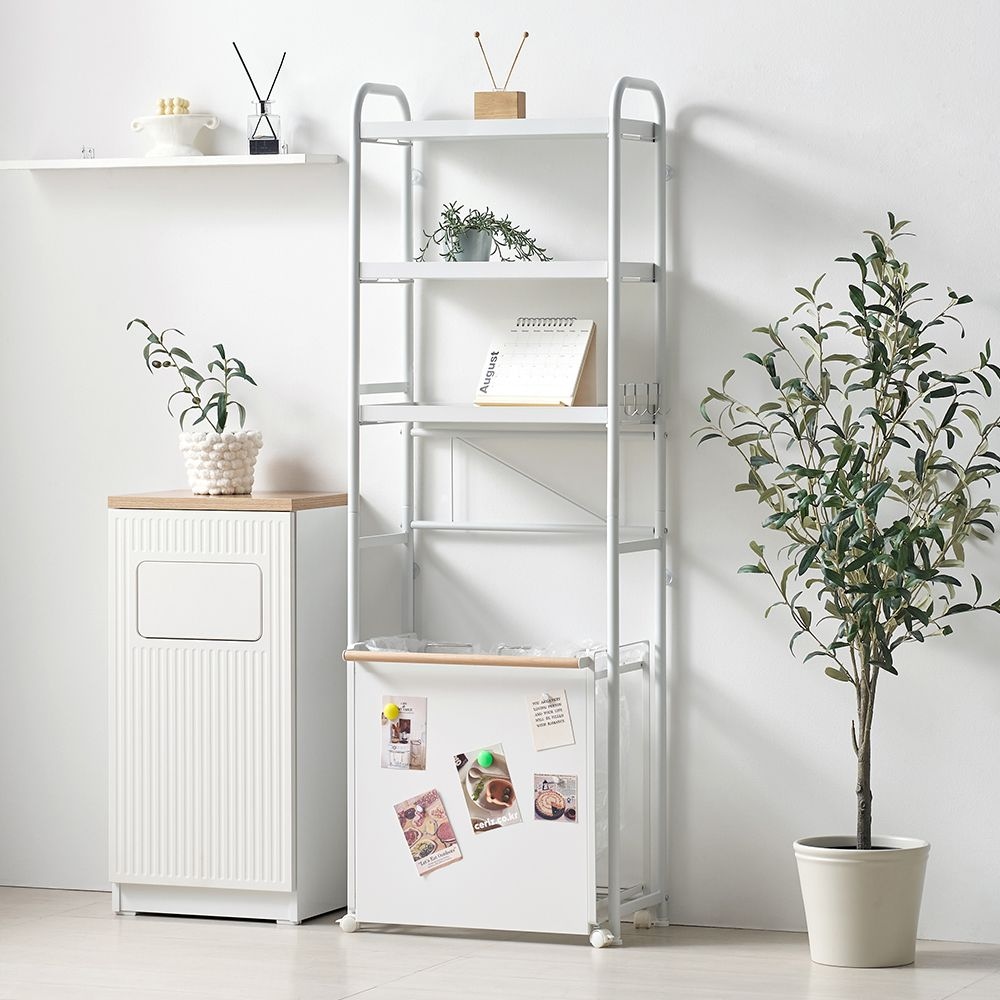 공간활용 분리수거함+세탁선반 세트 쓰레기통 가정용 재활용 3단 분리수거대 쓰레기봉지걸이
