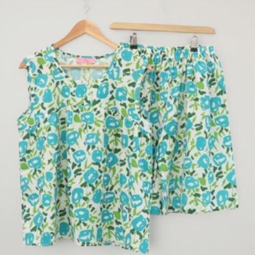 [신상오픈런]여성용 면 민소매 티셔츠와 반바지 파자마 세트
