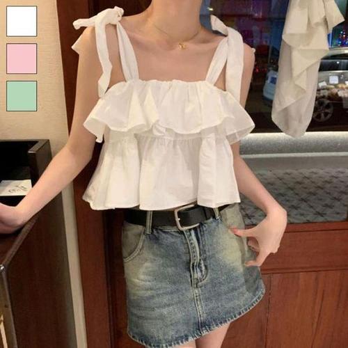 [옷자락]여자 여름 시원한 가벼운 캉캉 민소매 블라우스