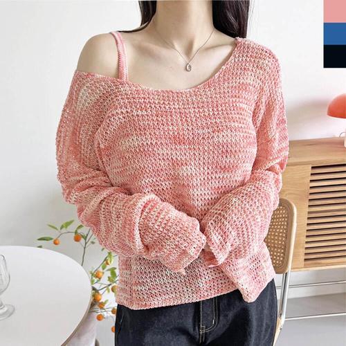 [옷자락]여자 레이어드 나시티 원숄더 여리핏 루즈 울니트 세트