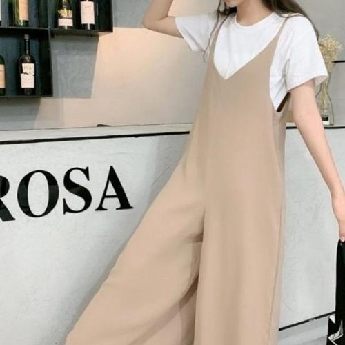 여름 점프수트 코디 민소매 점프슈트 레이어드 와이드핏 롱 여자