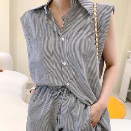 |CCD28F2|여성 스트라이프 민소매 탑과 반바지 세트