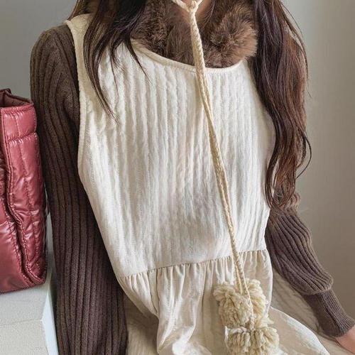 [신상오픈런]여성용 겨울 골덴 스퀘어넥 박시 기모 나시 롱드레스