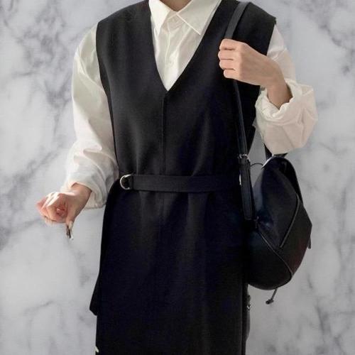 [다잇템][다잇템] 여성 슬리브리스 스웨터 조절 헤링본 버클 미니멀리즘 혁대 롱 드레스_23796698_588872