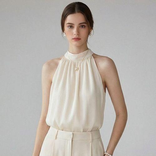 [휴드]엘시즈 쉬폰 홀터넥 민소매 블라우스