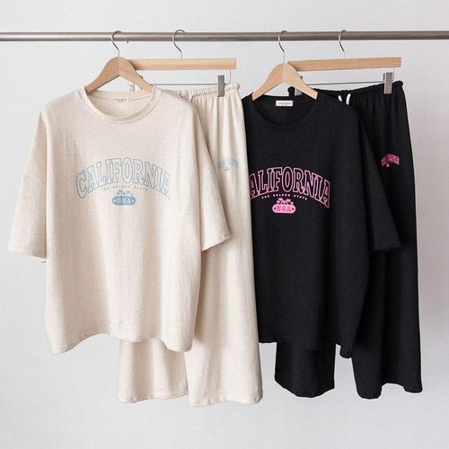 여성 바지 반팔티와 나염 넓은 박스 세트