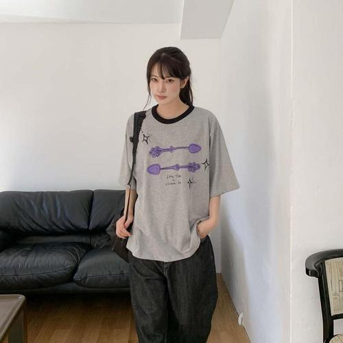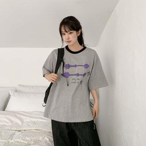 여성 면원단 콘트라스트 그런지 나염 반팔티