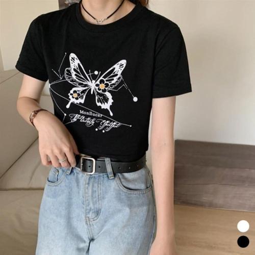 [1+1] 여성 나염 키치무드 탱크 버터플라이 반팔티