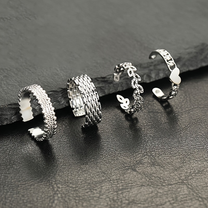 TEMU 시크한 조절 가능한 하트 & 버드나무 잎 반지 - 스테인리스 스틸, 커플에게 완벽, 가을/겨울 패션에 이상적