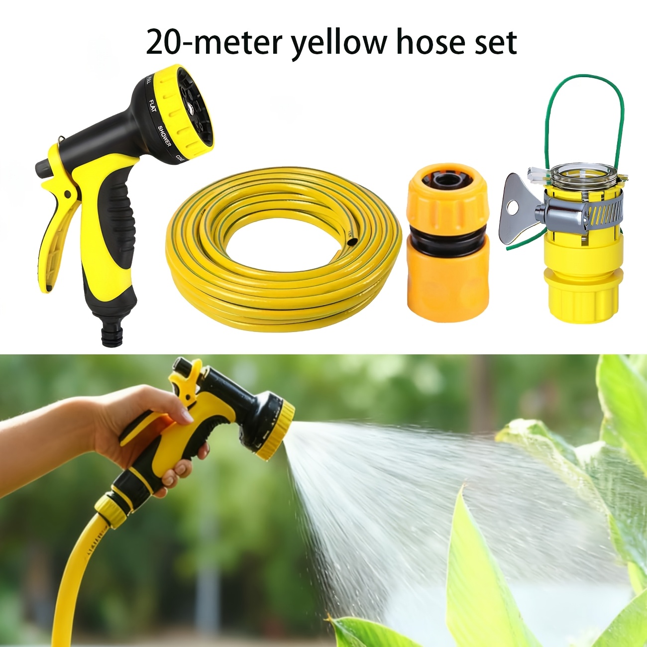 TEMU 10가지 기능 고압 물총 및 호스 세트, 엉킴 방지 강력 청소 시스템 - 야외 리뉴얼, 마당, 파티오 청소, 차량 세척 및 정원 관개에 적합