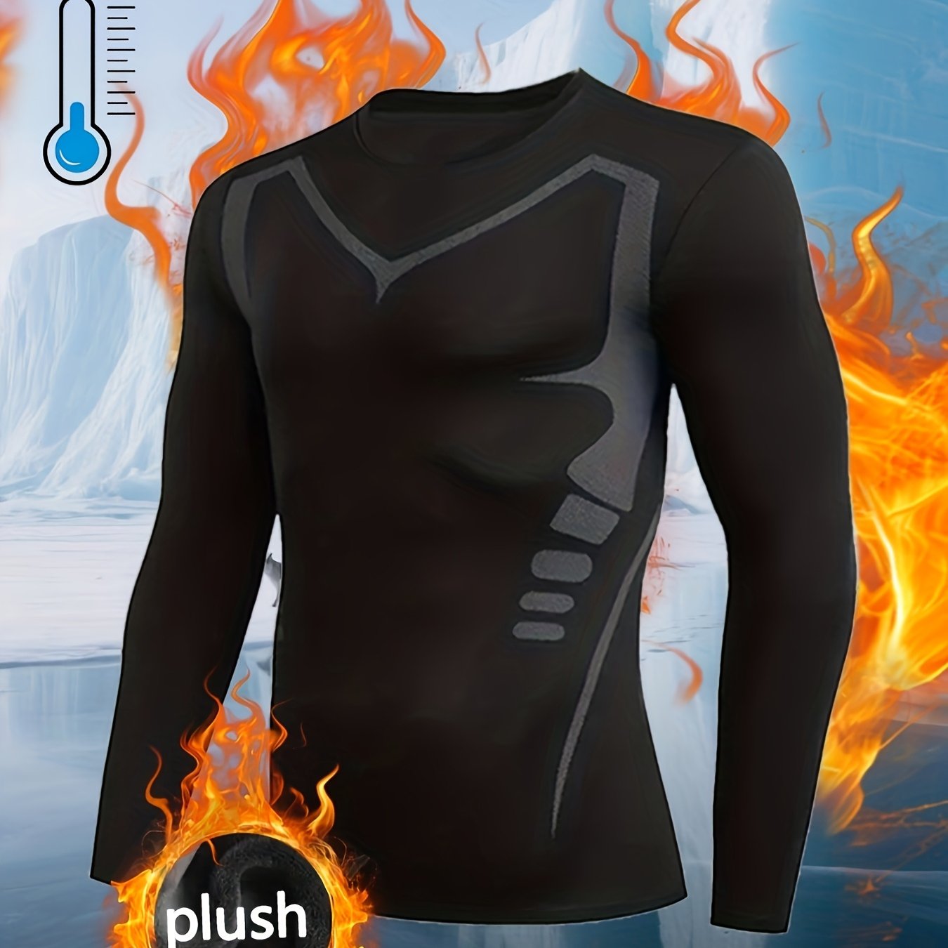 TEMU 남성용 보온 속건성 두꺼운 플리스 컴프레션 셔츠 | 고급 프린트, 컴프레션 핏 피트니스 탑, 다양한 스포츠 베이스 레이어로 적합, 가을 & 겨울 크루넥 속건성 피트니스 베이스 레이어