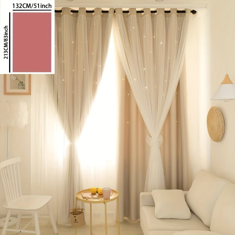 TEMU 베이지색 별무늬 커튼 2장 세트 - 클래식 스타일, 기계 세탁 가능, 침실 및 거실용 햇빛 차단 장식 커튼.