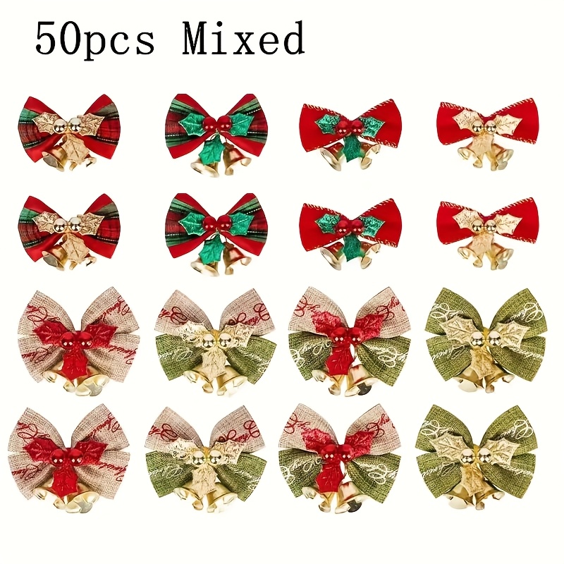 TEMU 50개 우아한 크리스마스 리본 장식 (벨 포함) - 튼튼한 린넨, 레드 & 그린, 트리, 화환, 선물 포장, 화환 장식, 장식용 리본, 현대적인 스타일, 크리스마스 장식, 크리스마스에 최고, 리본 부자재, 쉬폰리본, 오간자 리본, 대형리본, 리본공예, 원단, 레터링리본, 체크리본|린넨