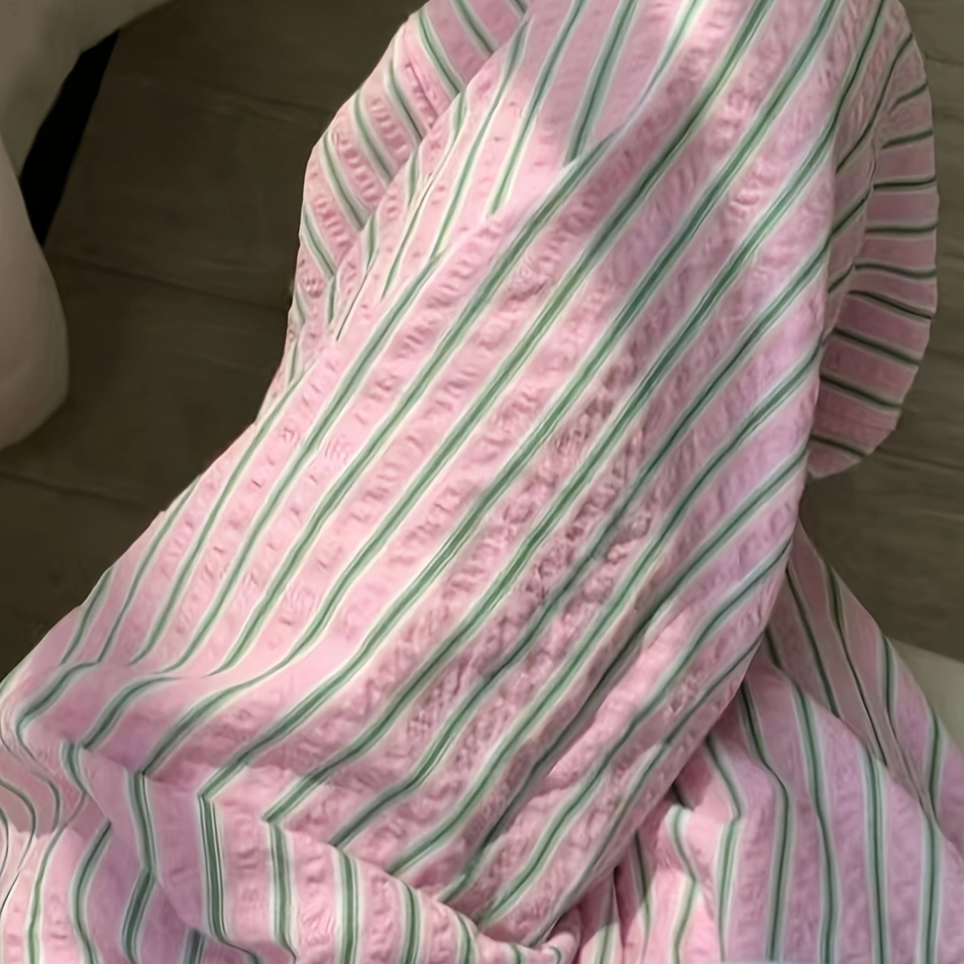 TEMU 여성용 부드러운 핑크색과 흰색 줄무늬 파자마 바지 - 루즈핏 스트레이트레그 캐주얼 잠옷, 모든 계절의 편안함, 다용도 홈 & 아웃도어 웨어, 사용 가능, 파자마 바지, 편안한 의류, 부드러운 원단 바지|잠옷|냉장고바지|파자마