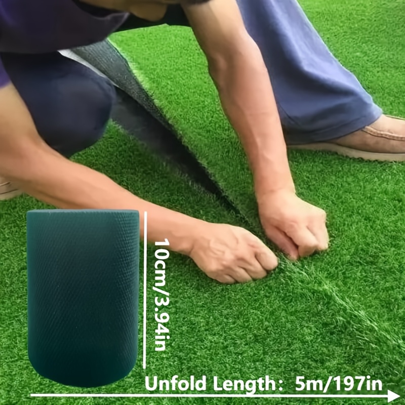 TEMU 인조 잔디 연결용 자가 점착 테이프. 미끄럼 방지 처리되어 애완 동물 공간, 놀이터, 습한 표면에 적합하며, 5Cm, 10Cm 또는 15Cm x 5M 사이즈로 제공됩니다. 간편한 필앤스틱 방식으로 쉽게 부착할 수 있습니다.