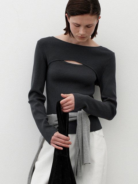 [아틀리에 나인] 에센셜 콜린 타이트 슬리브리스 니트(T-7070)